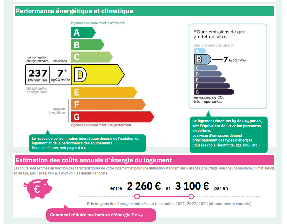 Consommations énergétiques - F - 412 kWh/m²/an.